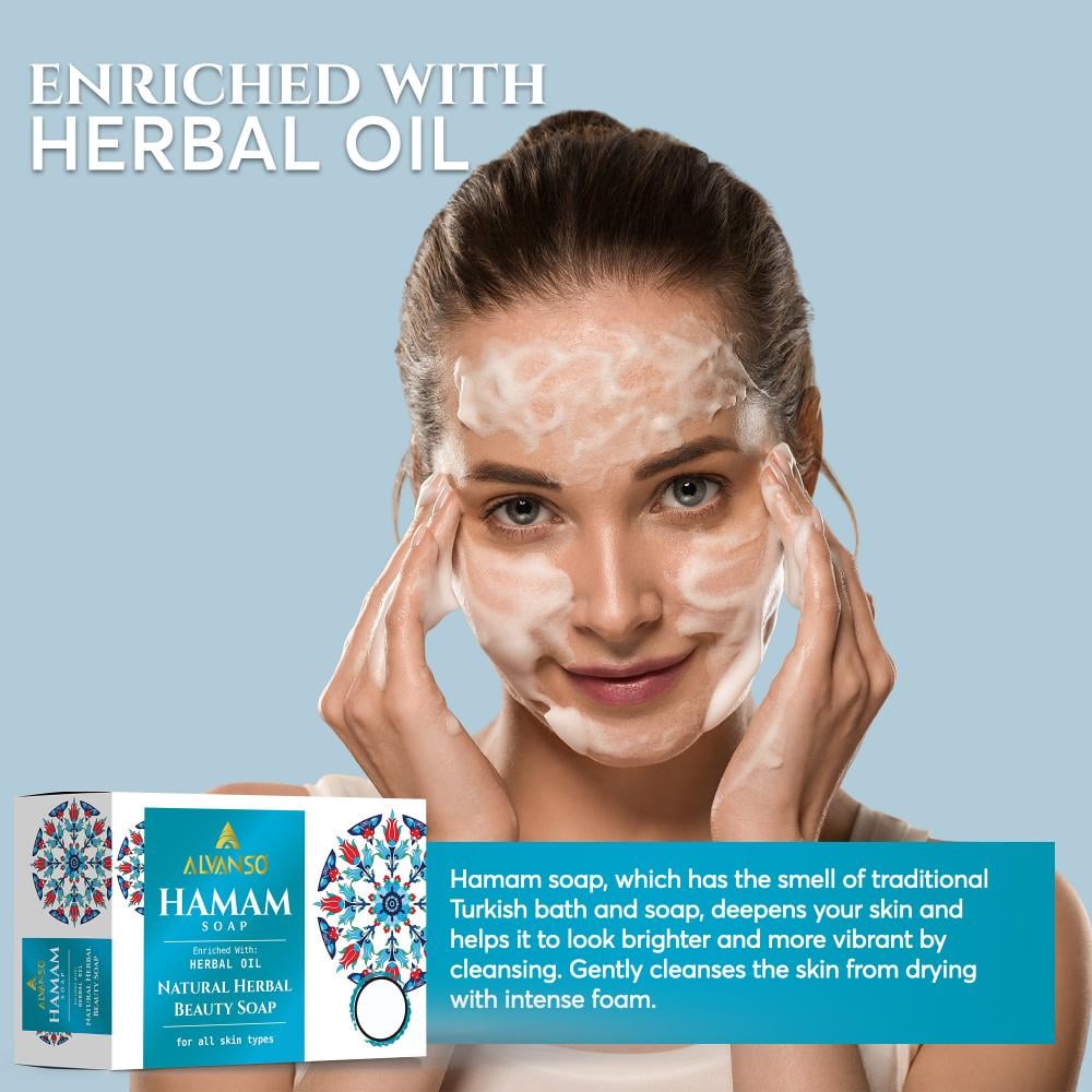 صابون الحمام التقليدي التركي بالزيت العشبي ينظف البشرة بعمق، وينعشها. يحتوي على بذور الزيتون والجلسرين، مما يساعد في إزالة خلايا الجلد الميتة.