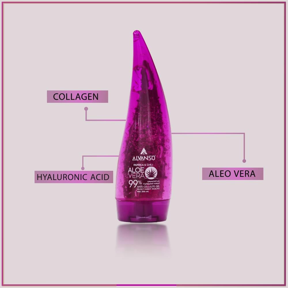 احصل على بشرة أكثر نعومة مع جل الصبار المضاد للسيلوليت من ألفانسو! تركيبة فعالة تجمع بين جل الصبار، الفلفل الحار، الفلفل الحلو، وبذور لونجون لتقليل ظهور السيلوليت وتحسين مرونة البشرة.