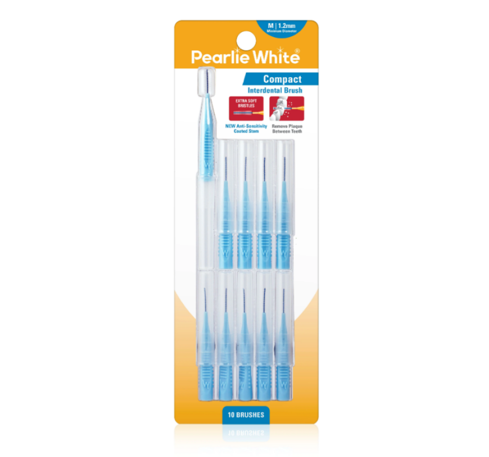 نظّف المسافات بين أسنانك بسهولة باستخدام فرش بيرلي وايت المدمجة. بفضل شعيراتها الناعمة وساقها المطلية بمادة مضادة للحساسية، تضمن تنظيفاً لطيفاً وفعالاً حتى للأسنان واللثة الحساسة