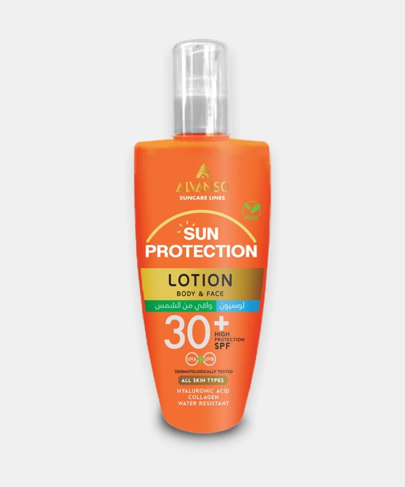 لوشن للجسم مع واقي شمس من ألفانسو ALVANSO SUN PROTECTION BODY & FACE +30 200ML هو الحل المثالي لحماية بشرتك من أشعة الشمس الضارة، تم اختباره من قبل أطباء الجلدية.
