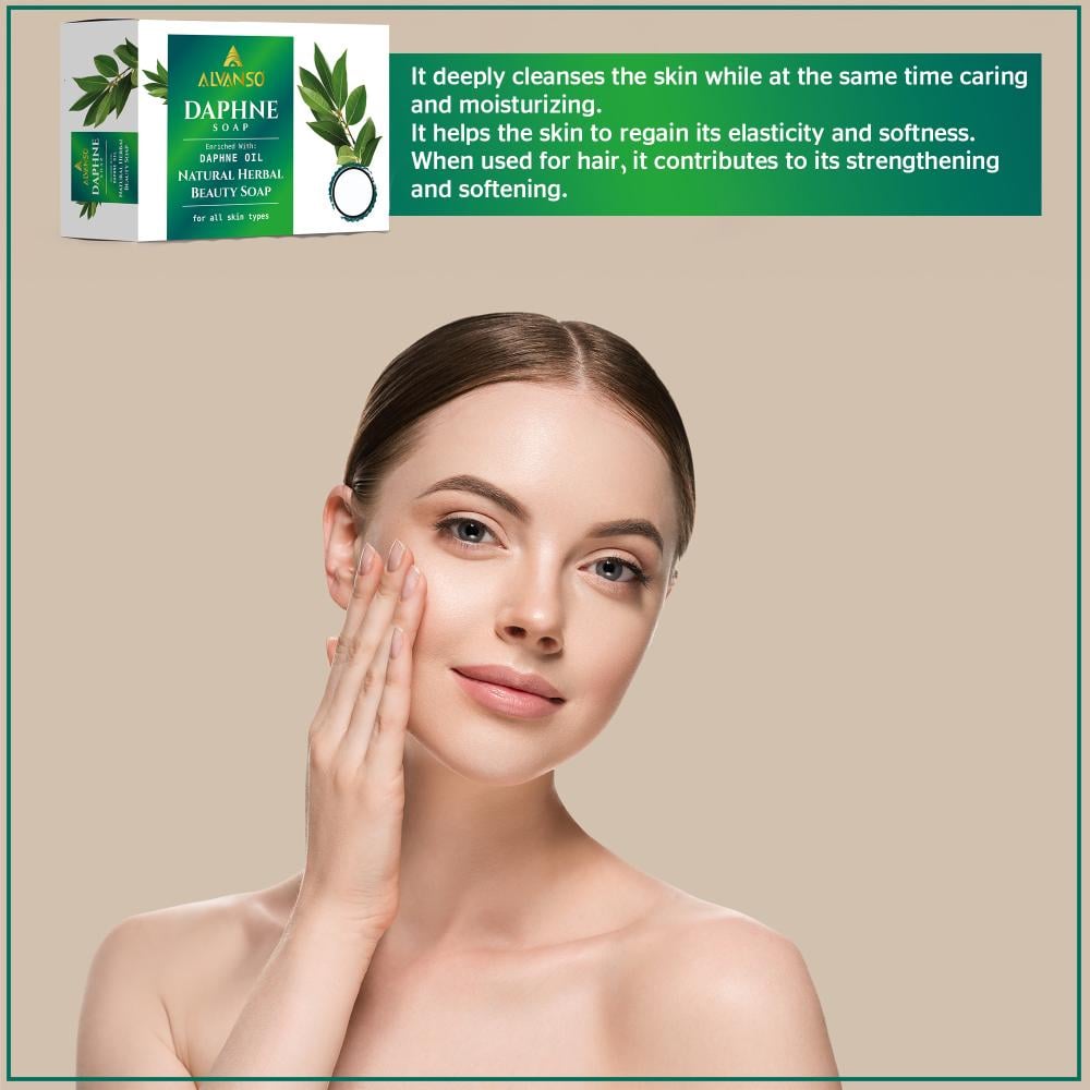 صابون دافني ينظف ويرطب البشرة والشعر وينعشهما، ويمنحهما رائحة لطيفة، .