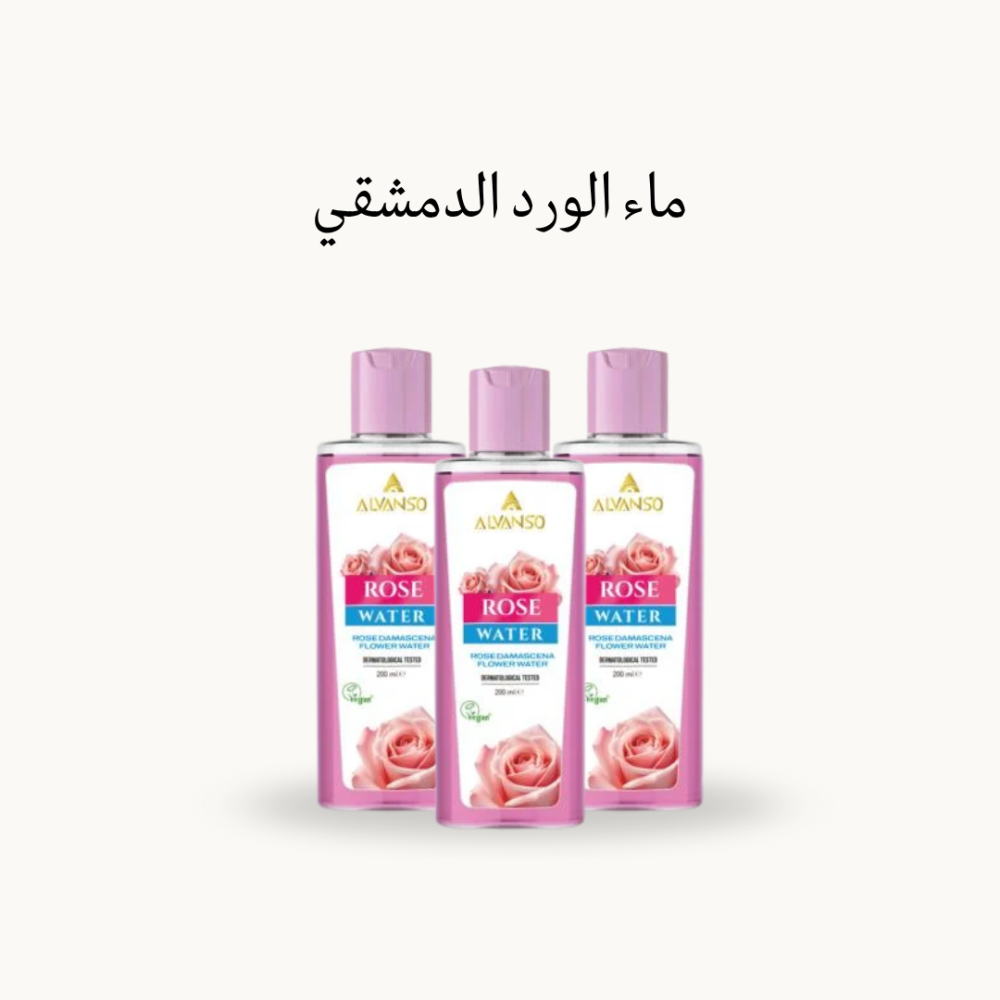 استمتعي بفوائد ماء الورد الدمشقي الطبيعي 100% مع هذه المجموعة الخاصة المكونة من 3 عبوات.