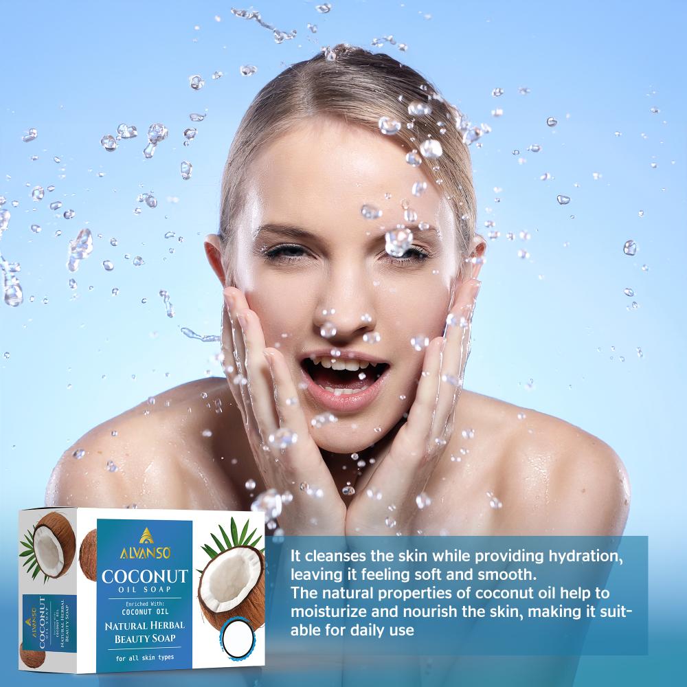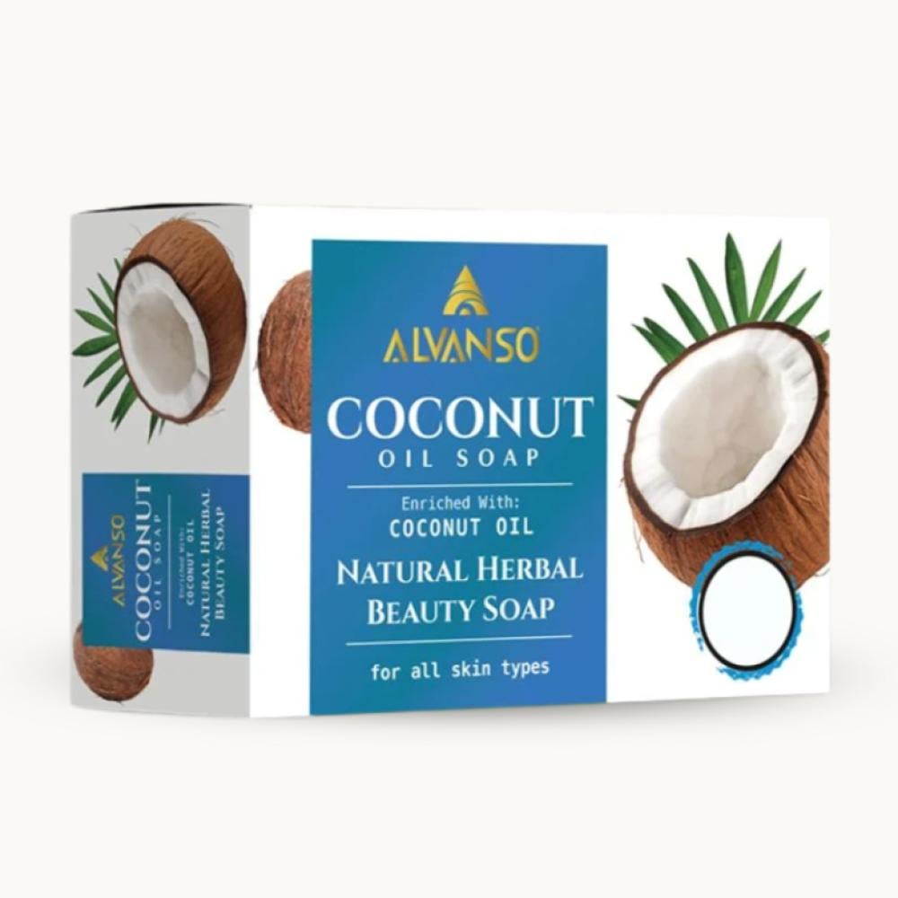 صابون زيت جوز الهند من ألفانسو منتج مثالي لترطيب وتغذية البشرة ، مناسب لجميع انواع البشرة.